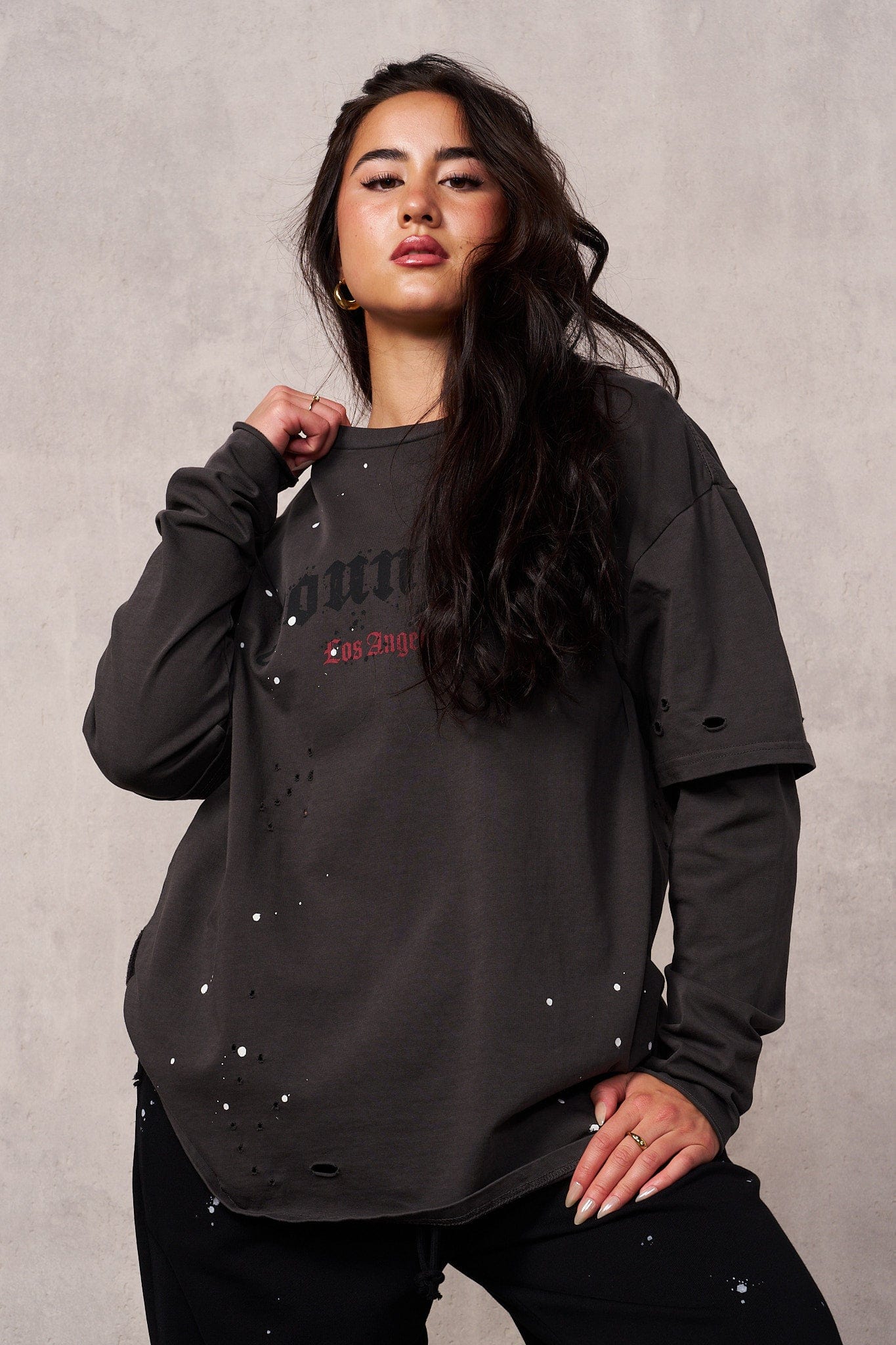 DESIGN: The “Ravage Tee” is an oversized, grunge-inspired shirt featuring rips, holes, and paint splatter for a bold, distressed look. Its relaxed fit and edgy design make it perfect for a rebellious, street-style statement