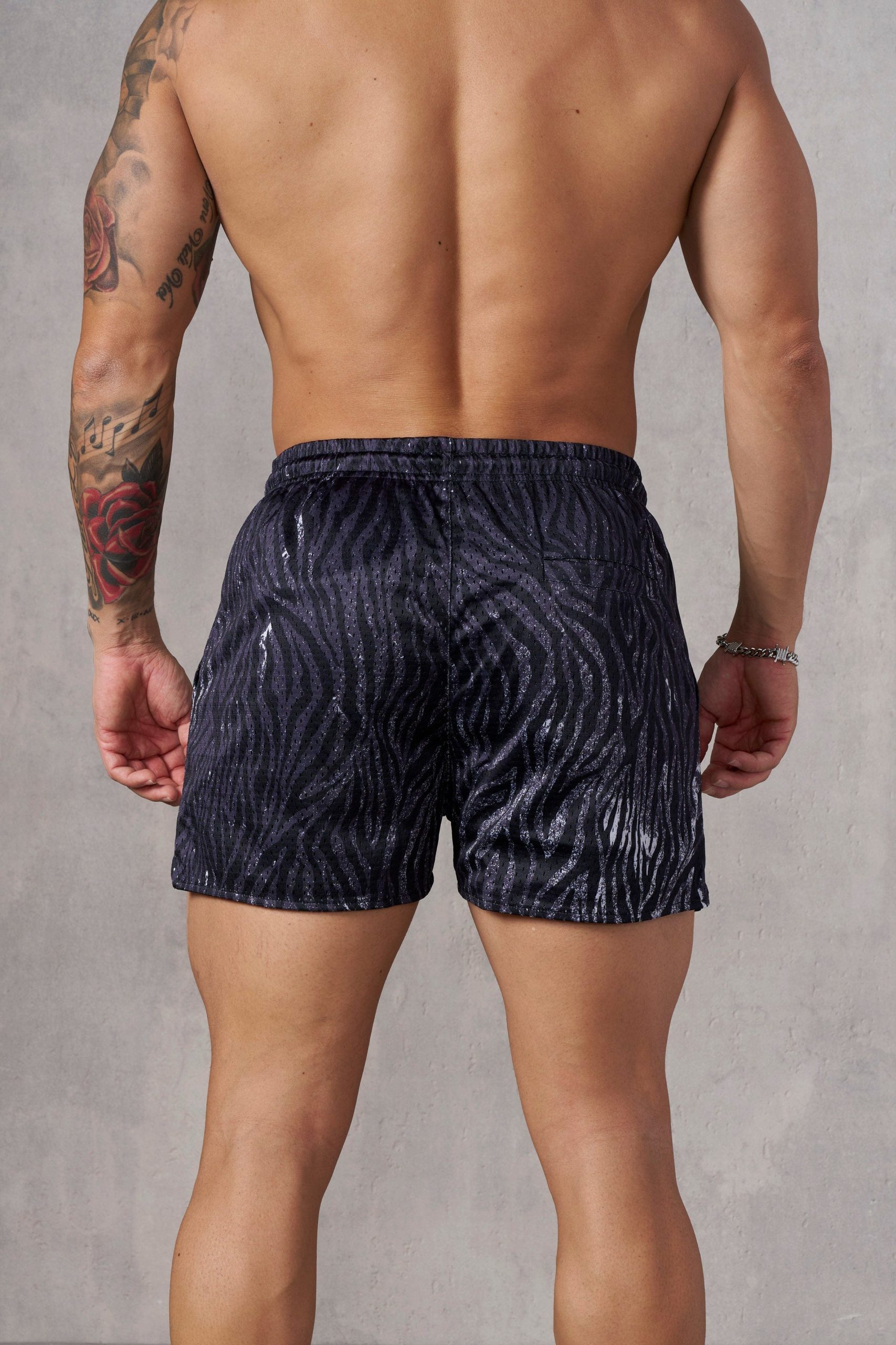 DESIGN: Stand out with these bold, reversible animal print shorts. Made from lightweight polyester mesh fabric, they offer a breathable fit perfect for any activity. Flip them inside out for a clean, solid-color look, giving you two styles in one.