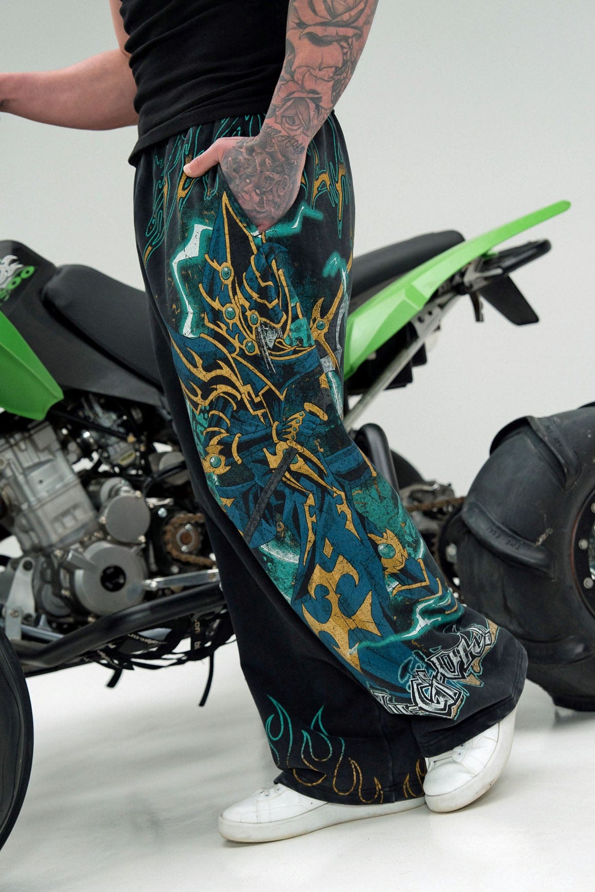 DESIGN: These 100% cotton, no-cuff baggy sweats deliver both comfort and statement-making style. Featuring a large character graphic printed on one leg and wrapping around the front and back, they’re designed to stand out while keeping you cozy.